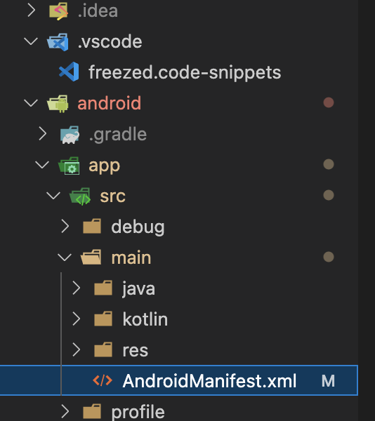 1. /android/app/src/main/AndoridManifest.xml 파일을 연다.