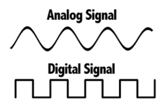 - 아날로그 신호: 물결 모양 전기 신호, 전화 회선이나 라디오 방송에 사용되는 신호.